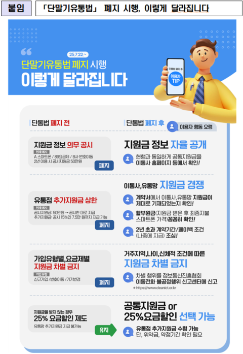 단통법은 폐지되었지만, 소비자 보호 장치는 여전히 작동한다. 단지 규제의 방식이 통제에서 관리와 감시 중심으로 전환되었을 뿐이다. 전기통신사업법 개정안과 그 하위 시행령에는 이동통신사와 유통점이 반드시 지켜야 할 의무 사항이 명시되어 있다.