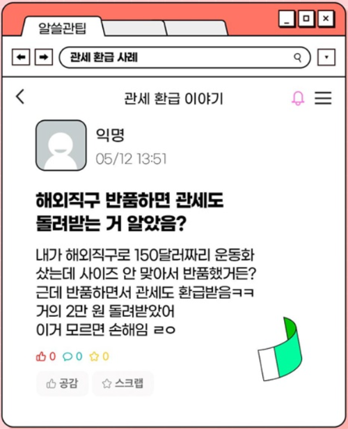반품을 하면서 단순히 물건 값만 돌려받는 것에 그치지 않고, 내가 낸 세금까지 꼼꼼히 챙기는 습관을 들이면 해외직구가 더욱 똑똑하고 효율적인 소비가 될 수 있습니다. 이제는 누구나 쉽게 환급받을 수 있으니, 반품 시 반드시 관세 환급도 함께 확인하시길 바랍니다.