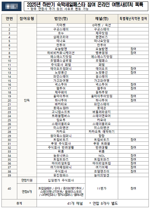 총 41개 온라인여행사 채널이 참여하며,