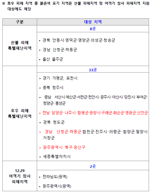 - 여객기 참사 피해지역: 전라남도, 광주광역시