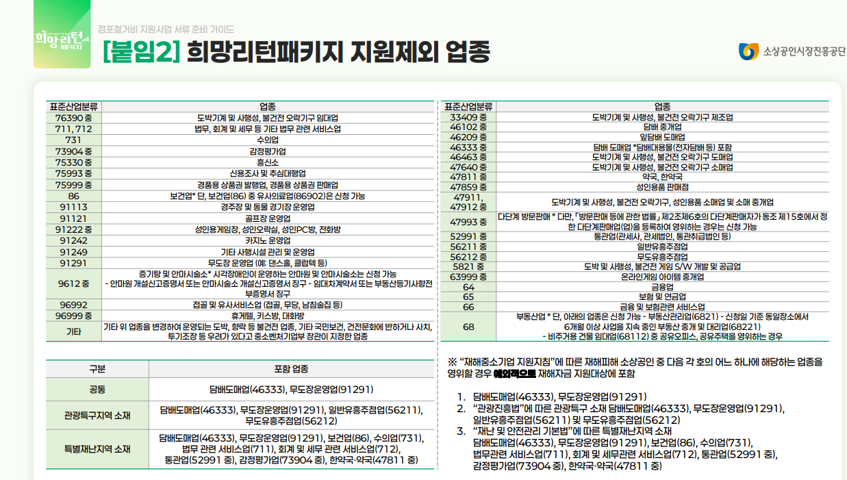 - 단, 유흥업, 사행성 업종 등은 지원 제외 업종으로 분류되니 반드시 확인 필요